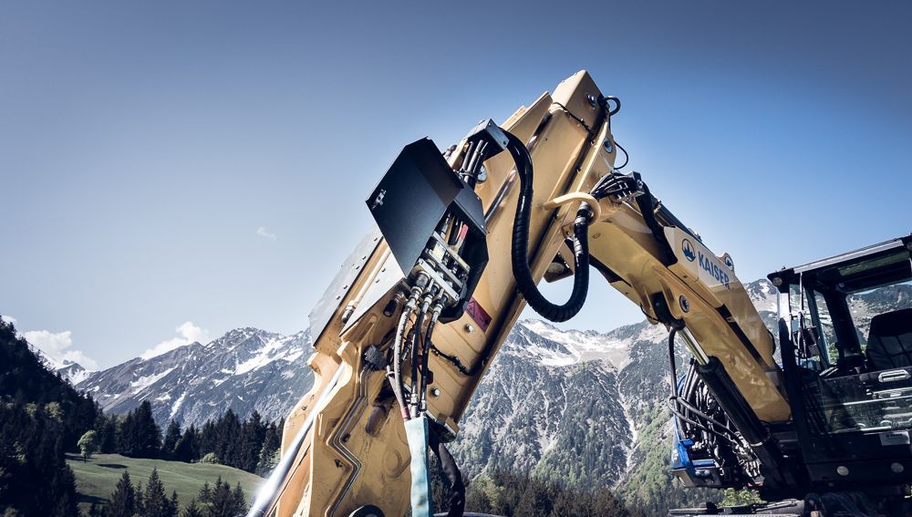 - Use of hydraulic hammers and other demolition tools is possible without restrictions. Installation on the side of the handle prevents excessive exposure to dirt